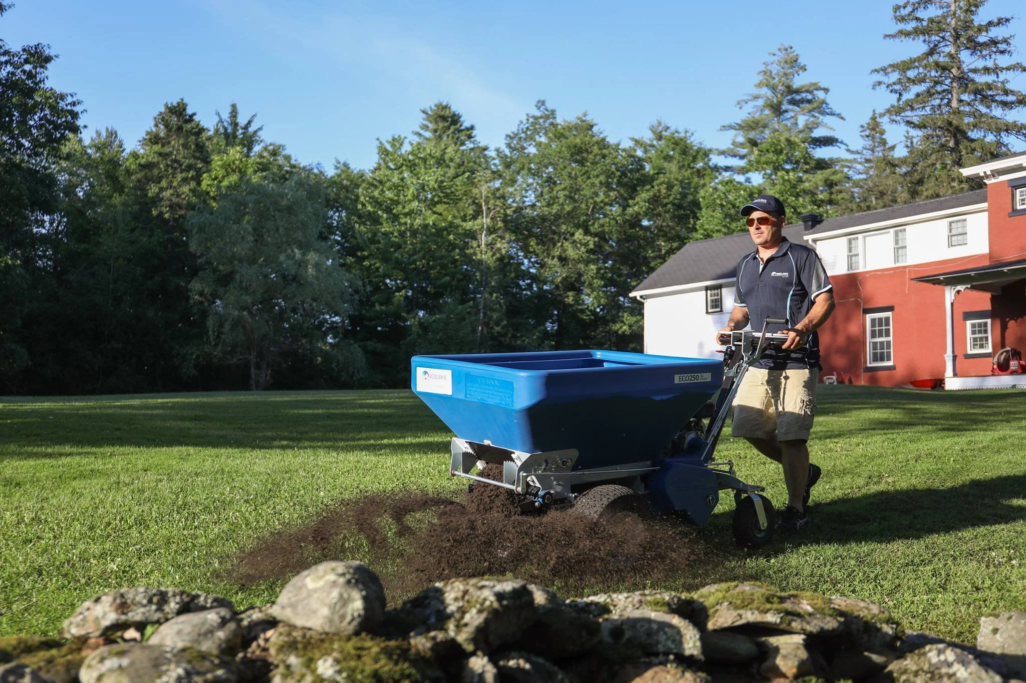 We use commercial battery powered equipment whenever possible for quieter service, complemented by organic top dressing service that supports long-term turf health.